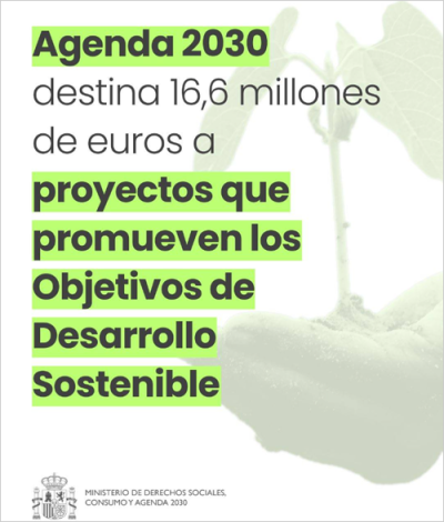 La Dirección General de Agenda 2030 del Ministerio de Derechos Sociales, Consumo y Agenda 2030 ha abierto una convocatoria de ayudas dirigidas a entidades locales y sociales que trabajan en la implementación de los Objetivos de Desarrollo Sostenible (ODS) en todo el territorio. Se destinarán 10 millones de euros a las asociaciones y colectivos sociales, y 6,6 millones a los ayuntamientos.