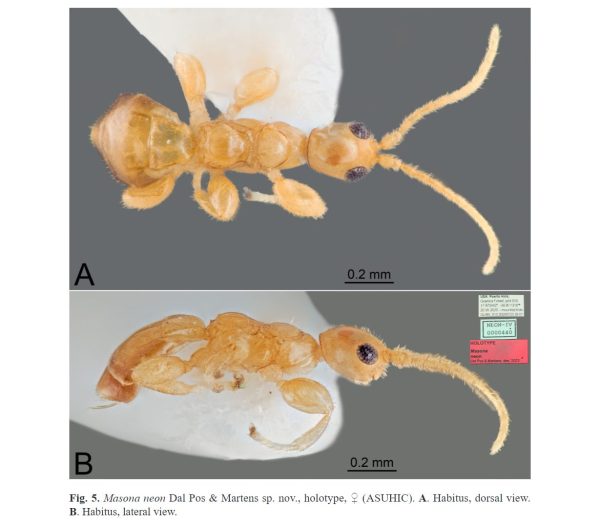 El investigador Davide Dal Pos, de la Universidad de Florida Central, solicitó una muestra de los insectos obtenidos en Guánica e descubrió la nueva especie conocida como ‘Masona neon’ en honor al proyecto científico homónimo.