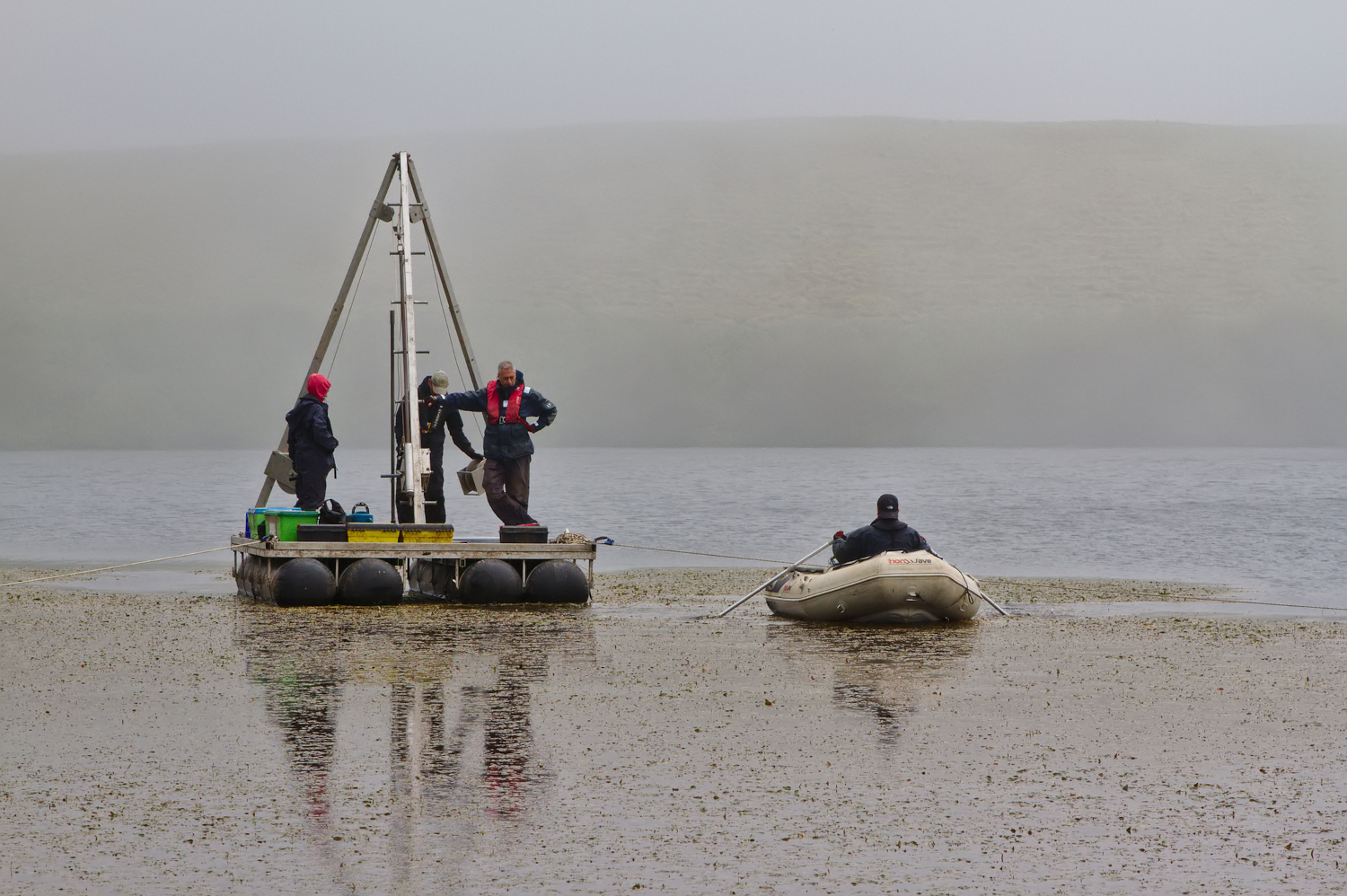 Toma de muestras en el lago Lomba donde se aprecia el crecimiento de plantas en la superficie (Santiago Giralt). Fuente: MNCN El aumento de la temperatura que está provocando el cambio climático está poniendo en peligro los ecosistemas lacustres del archipiélago de las Azores. Estos lagos, que son