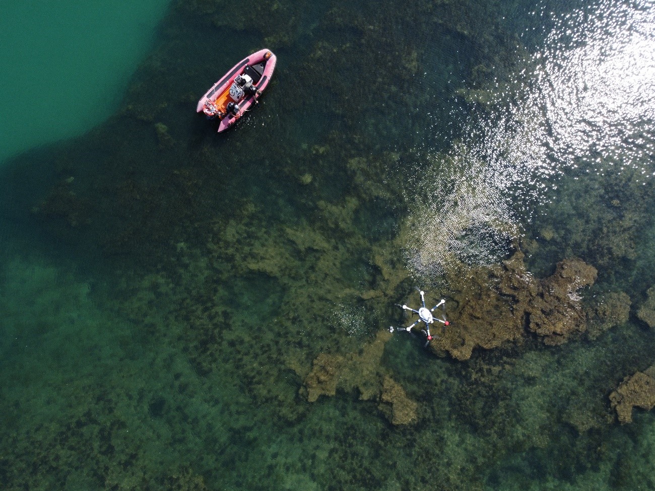 El algoritmo, desarrollado por el ICMAN-CSIC en colaboración con la NASA, permitirá avanzar en el conocimiento del impacto del cambio climático y la vida humana en las zonas costeras. Dron sobrevolando la costa. / ICMAN El Instituto de Ciencias Marinas de Andalucía (ICMAN), centro de investigación del Consejo