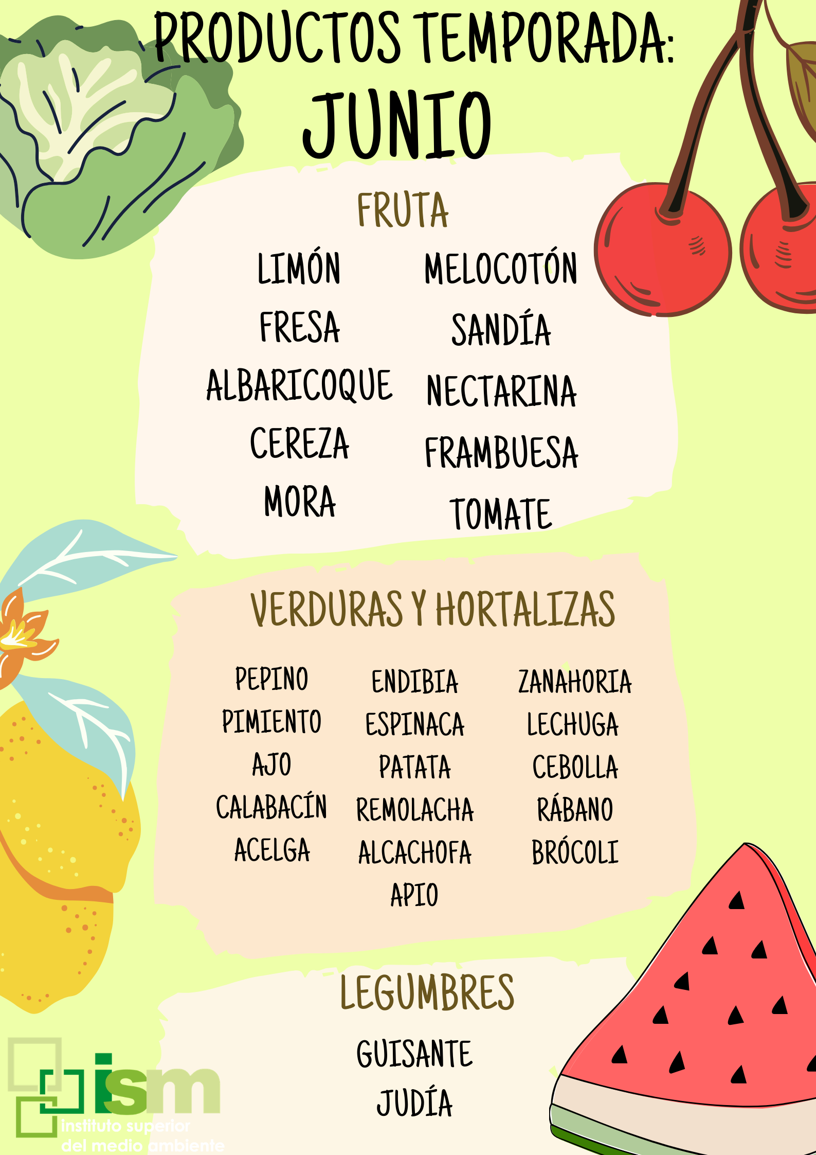 Junio es temporada de lechuga, zanahoria, espárrago, apio, remolacha, patata, endibia, brócoli, acelga, alcachofa y ajo.