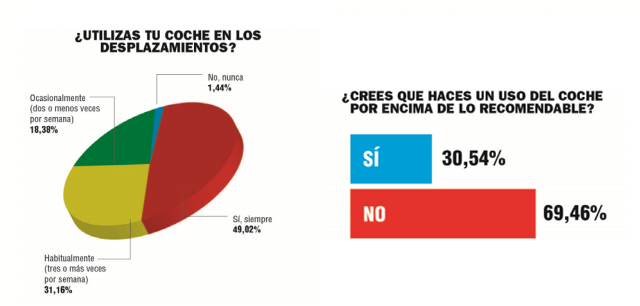 A su vez, uno de cada dos encuestados declara que utiliza el coche a diario para sus desplazamientos, aunque bien es cierto que un 30% reconoce realizar un uso «por encima de lo recomendable».