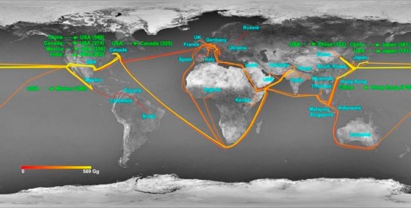 Las investigación, con datos de 2010, concluye que el consumo en Estados Unidos, China, India y Brasil es responsable de 46 por ciento de las emisiones de nitrógeno globales y que Japón y otros países desarrollados importan nitrógeno reactivo en la ropa de fabricación china, así como de la carne de Estados Unidos y Australia. Reino Unido, Alemania, Italia y Francia intercambian cantidades significativas de emisiones de nitrógeno incorporadas en los productos alimenticios.