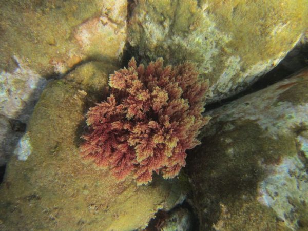 Ejemplar del alga invasora Asparagopsis taxiformis en aguas costeras. © Lydia Png (COB, IEO-CSIC). Fuente: IEO