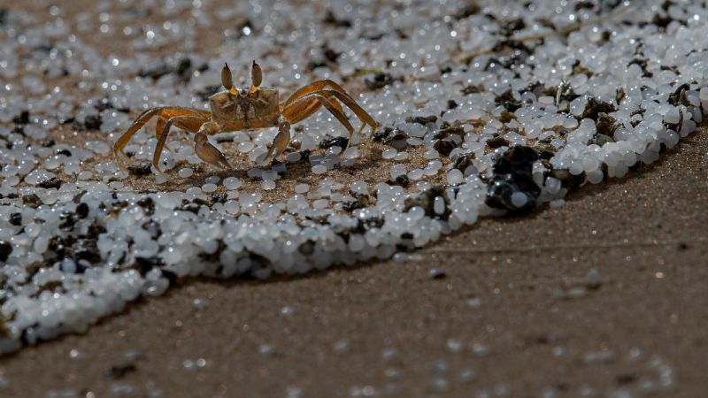 Animales marinos caminan sobre los granulados de plástico vertidos en el mar de Sri Lanka/ Fuente: Twitter