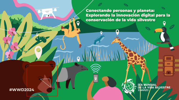 El Día Mundial de la Vida Silvestre 2024 sirve como una plataforma para el intercambio intergeneracional y el empoderamiento de los jóvenes. A través del arte, presentaciones y debates, se centra en las oportunidades para una conservación digital sostenible de la vida silvestre. Anima a explorar las innovaciones digitales existentes, abordar las discrepancias interseccionales y visualizar una conectividad digital inclusiva para todas las personas y el planeta.