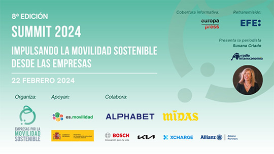 Por 8º año consecutivo, el próximo 22 de febrero tendrá lugar el encuentro profesional ‘SUMMIT 2024: Impulsando la Movilidad Sostenible desde las Empresas’, que cuenta con el apoyo del Ministerio de Transportes y Movilidad Sostenible,