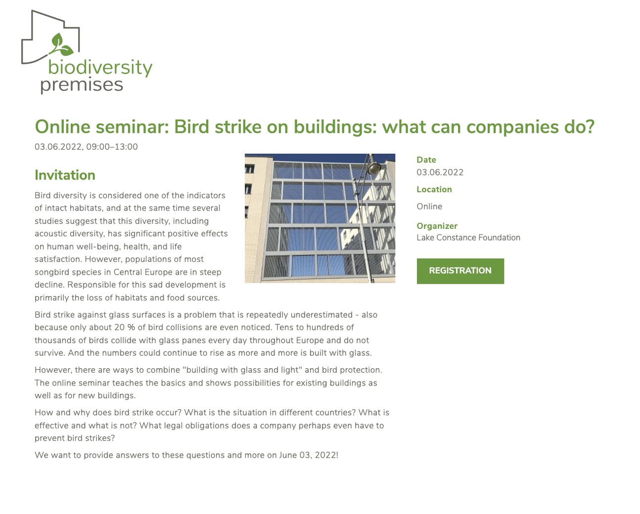 La colisión de aves contra superficies de vidrio es un problema que se subestima en repetidas ocasiones, también porque solo alrededor del 20 % de las colisiones de aves se aprecian. Sin embargo, cientos de