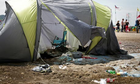 Bueno, hasta aquí muy bien. Pero alguien se ha preguntado qué pasa con esas pobrecillas tiendas que se quedan huérfanas allá en el campo de batalla de un festival. ¿Se donan a Boy Scouts Sin Fronteras?, …, ¿se reciclan para hacer paracaídas para Paracas Sin Fronteras?, … pues no, su destino es dar volumen a Vertederos Sin Fronteras. Así nos lo explica A Greener Festival en este curioso cortometraje [lbm_youtube]http://www.youtube.com/watch?v=Px6qfsRXv2w[/lbm_youtube] Y es que en palabras de organizadores de festivales como el de Glastonbury (un festival británico de +/- 180.000 asistentes), es más pragmático e incluso más sostenible llevárselas a un vertedero que el ingente trabajo que supondría reciclarlas a todas.