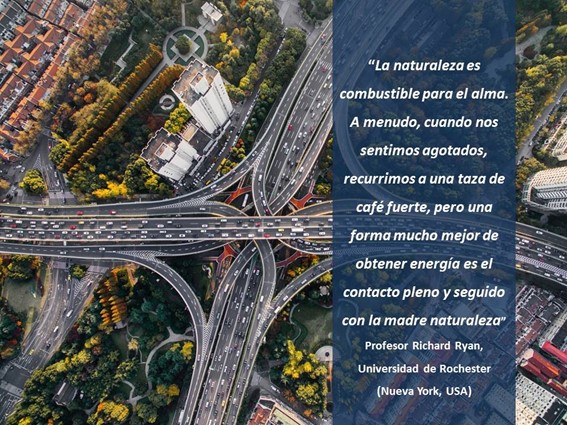 El estilo de vida actual, especialmente en las ciudades, nos mantiene desprendidos, alejados de la naturaleza, disminuye la calidad y cantidad de nuestra conexión con el entorno natural y acabamos perdidos en el ritmo y artificiales de la rutina urbana. La conexión con la naturaleza es una actitud y sentimiento innato de pertenencia al medio natural. El ser humano ha vivido rodeado de naturaleza durante toda su evolución, forjándose una estrecha relación positiva con nuestras emociones, en la forma de pensar y, también, física.