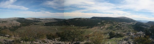 Desde este enclave pudimos contemplar uno de los paisajes más espectaculares, se trata del Polje de la Nava. Un poljé es una depresión producida por la disolución de las rocas (en este caso calizas y dolomías). En los poljes se pueden observar dolinas que son depresiones de menor tamaño.