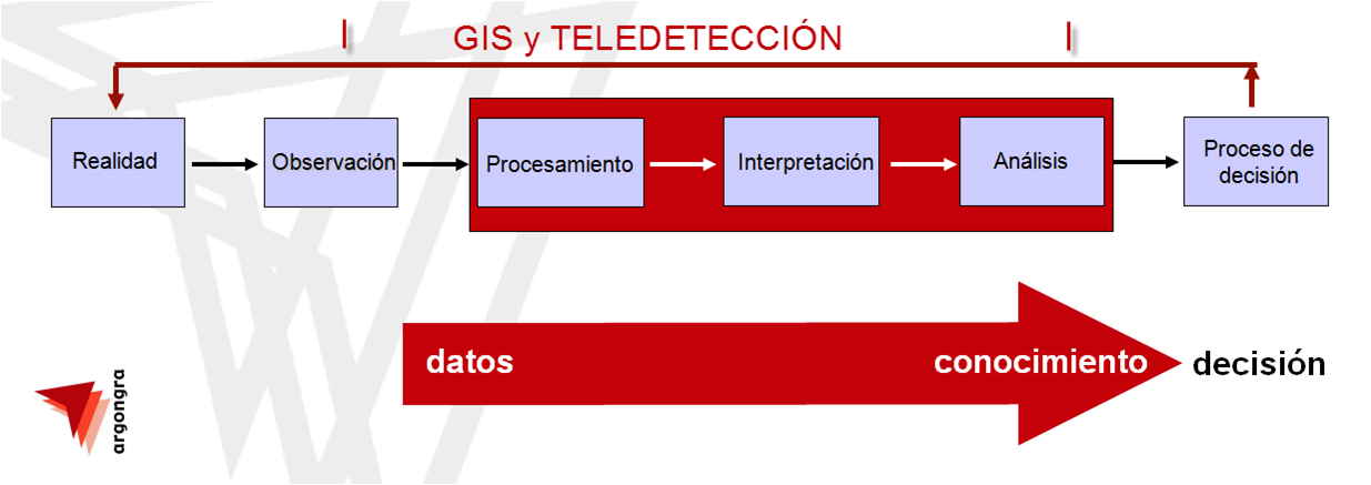 Por supuesto que el manejo de herramientas avanzadas de GIS y Teledetección es un punto fundamental en el éxito de la cadena pero no el único; no debemos olvidar que son herramientas imprescindibles para el manejo de ingentes cantidades de datos pero sin un conocimiento adecuado de esos datos y de la disciplina en la que debemos aplicarlos, nunca podremos convertirlos en información.