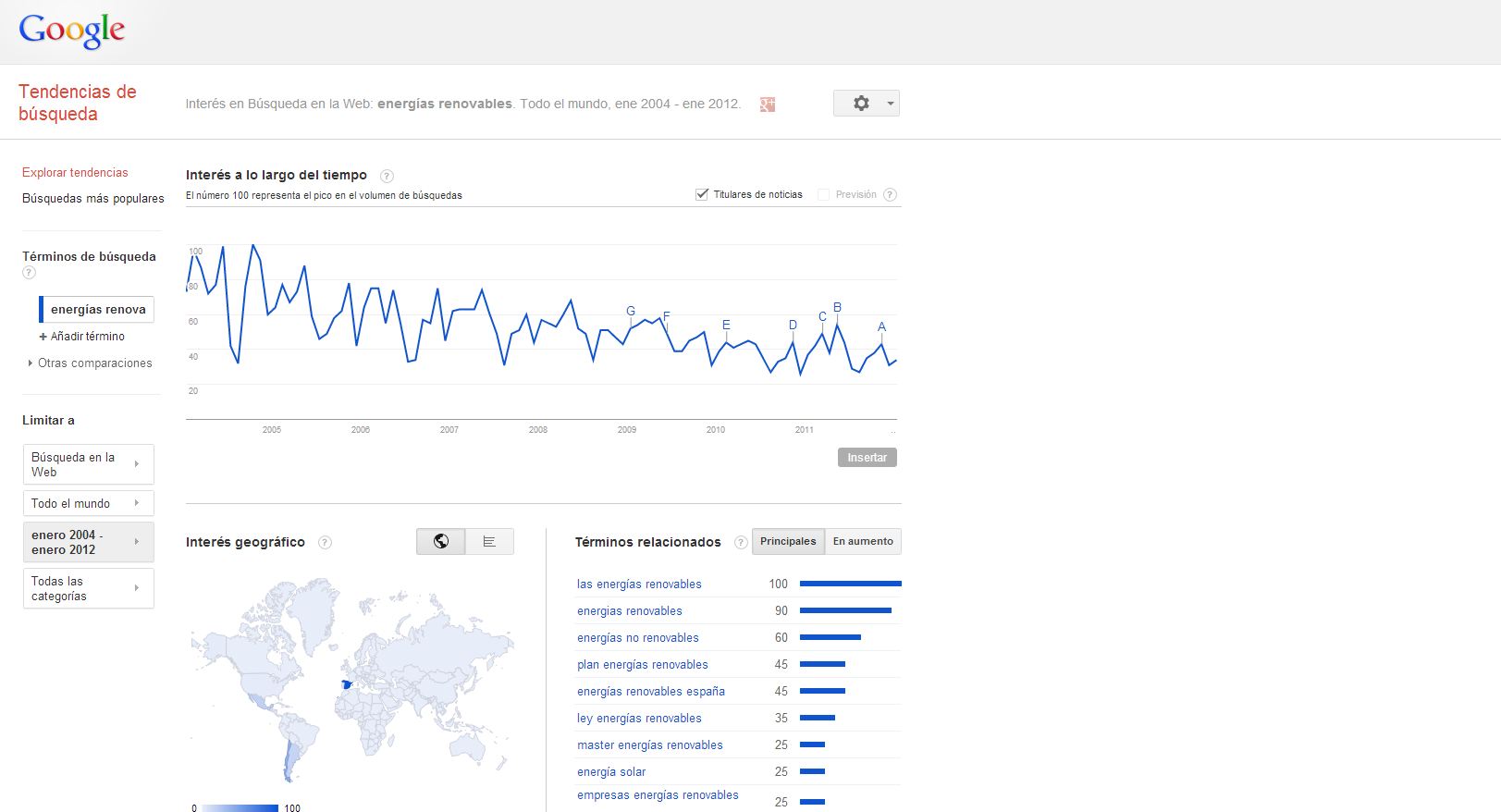 Si queremos ver la evolución del interés que despiertan esas palabras clave, acudiremos a Google Trends