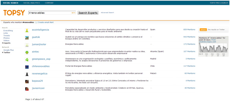 Con una herramienta como Topsy veremos los tweets más exitosos y, además, una lista de expertos en el tema que nos interesa: mantener