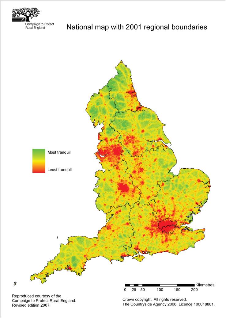 Cómo podemos incorporar la idea de bienestar y confort emocional en la gestión y planificación del paisaje. Desde 2005, en Inglaterra el proyecto Campaign to Protect Rural England (CPRE) viene trabajando en una sugerente metodología para crear mapas de tranquilidad (en inglés “tranquility maps”) que identifican áreas de bienestar social y paisajístico del territorio.