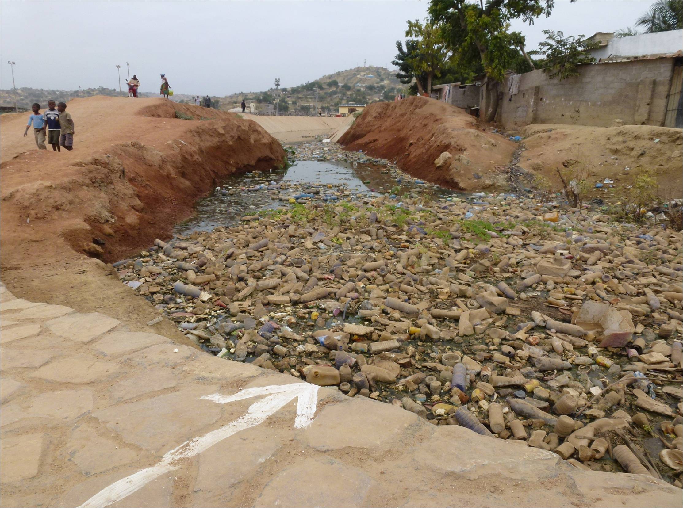 Sumbe (Ángola) . Convivencia de la gente con los residuos plásticos en un canal de desagüe. Autor: Pedro Pablo Loné