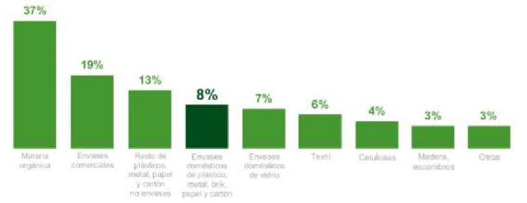 Cabe destacar cual es la composición media de los residuos domésticos en España: