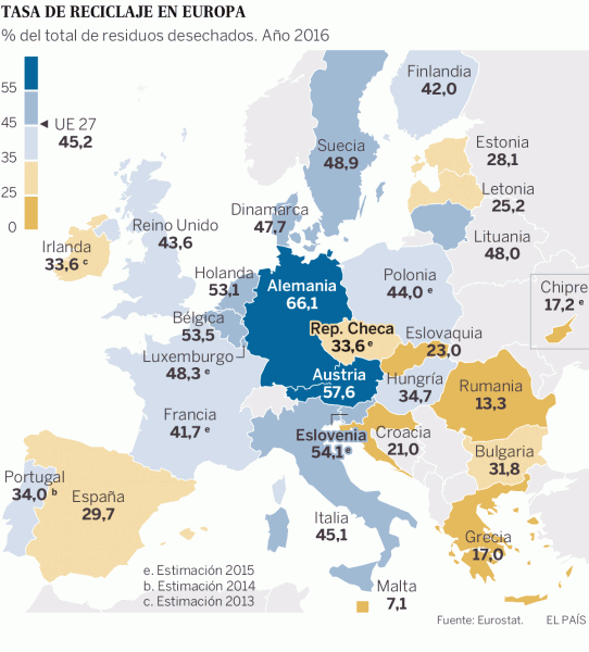 ¿Cuáles son los datos del reciclaje en España?