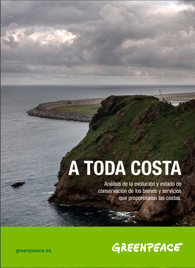 El informe A Toda Costa, elaborado por Greenpeace y el Observatorio de la Sostenibilidad, evalúa por primera vez el estado de la costa española a través de la pérdida de bienes y servicios ambientales de los diez primeros kilómetros de la franja litoral.