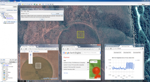 La asociación entre la FAO y Google ha dado como resultado Collect Earth , una herramienta online de código abierto que permite acceder a grandes colecciones de imágenes gratuitas de alta resolución obtenidas desde satélites y a recursos informáticos en la nube. Se trata de una aplicación que se ejecuta junto a Google Earth desarrollada por FAO para el análisis de muestras forestales en sincronía con Google Earth Engine y Open Foris Collect.
