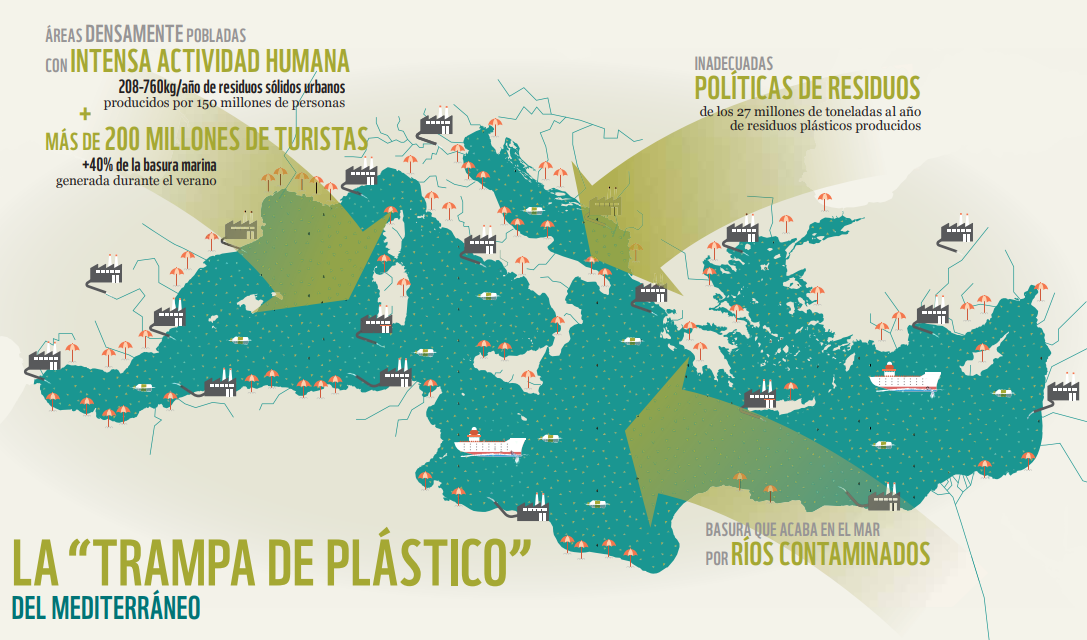 El informe ‘Una trampa del plástico. Liberando de plástico el Mediterráneo» destaca los efectos dramáticos que el uso excesivo de plásticos, la pésima gestión de los residuos y el turismo de masas que provocan en el mar Mediterráneo, una de las regiones más visitadas del mundo.