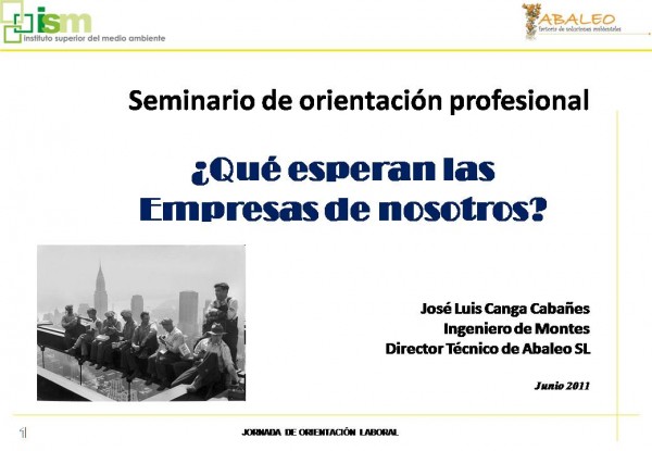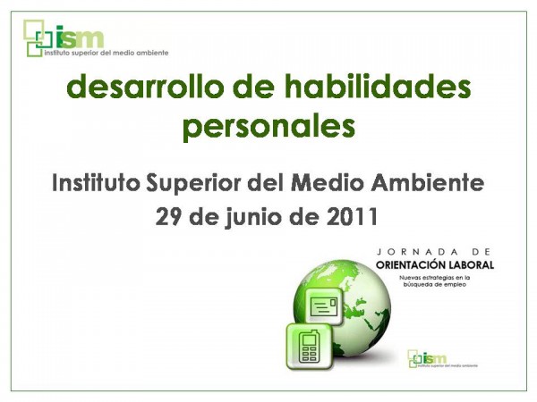 Presentaciones de los ponentes de las Jornadas de Orientación Laboral Junio 2011 en la sede del Instituto Superior del Medio Ambiente.