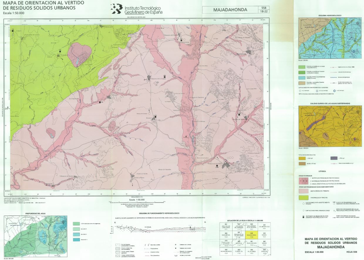 El mapa web que compartimos muestra la caracterización del territorio frente al vertido de residuos sólidos urbanos que puedan ser fuente de contaminación de acuíferos diferenciándose tres categorías: zonas no favorables, zonas que requieren estudios complementarios y zonas favorables. Se incluyen los vertederos inventariados a la fecha de la elaboración de la cartografía, los puntos de captación para el abastecimiento.