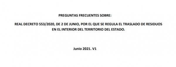 El Ministerio para la Transición Ecológica y el Reto Demográfico ha publicado un documento de preguntas frecuentes sobre el traslado de residuos. Este documento tiene por objeto aclarar ciertos aspectos y cuestiones habituales sobre el Real Decreto 553/2020, por el que se regula el traslado de residuos en el interior del territorio del Estado.