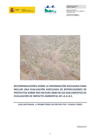 El objeto de esta Guía es facilitar a los Promotores/Consultores que intervienen en procedimientos de evaluación de impacto ambiental de proyectos cuyos órganos sustantivo y ambiental pertenecen a la Administración General del Estado una metodología para elaborar los contenidos necesarios para poder realizar una “Evaluación de repercusiones del proyecto sobre la red Natura 2000”, que sea adecuada según la Ley 42/2007 del Patrimonio Natural y de la Biodiversidad, e integrarlos de forma coherente y práctica en los principales documentos técnicos utilizados en los procedimientos de Evaluación de impacto ambiental de proyectos, regulados por la Ley 21/2013 de evaluación ambiental.