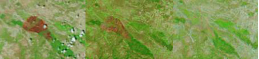Ilustración 6 Imágenes MODIS 2005, 2006, 2007 (Incendio Guadalajara 2005)