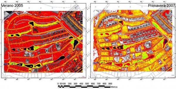 Ilustración 2 Análisis de estado de la vegetación a partir de imágenes de satélite en primavera y verano