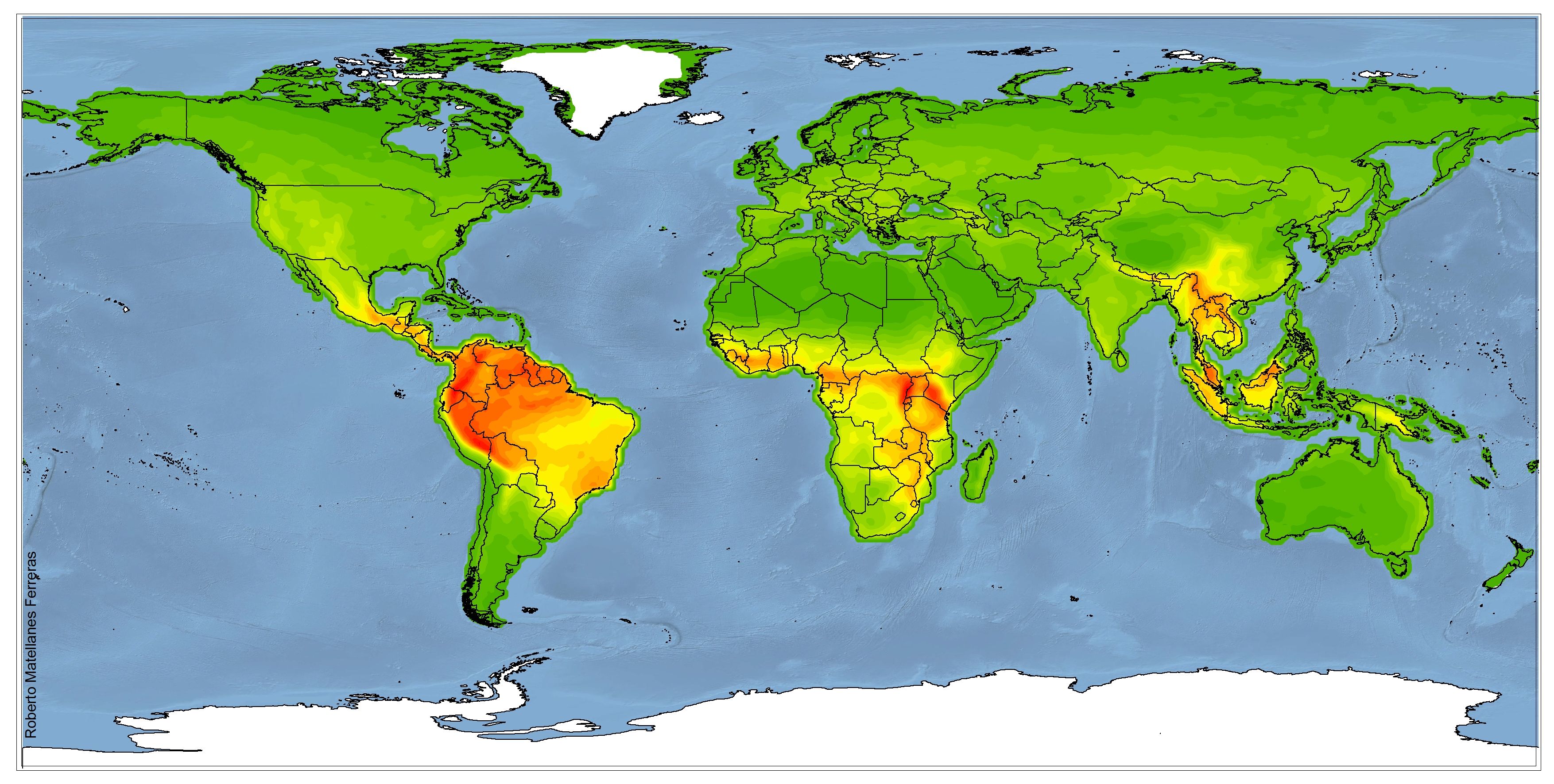 Veinte años más tarde, este tipo de distribución me hace pensar, bajo una lógica aplastante, que donde más especies existan más probabilidad de pérdida de biodiversidad predominará. Siguiendo líneas de trabajo como las de Williams, P. H., Gaston, K. J. y Humphries, C. J., se me ha pasado por la cabeza destripar la distribución de 16.000 especies incluidas en la Lista Roja de la UICN a nivel mundial con el fin de evaluar la forma en la que se distribuyen y los lugares donde mayor amenaza mundial existe. ¿Cuales serán los puntos geográficos con mayor amenaza de especies a nivel mundial?