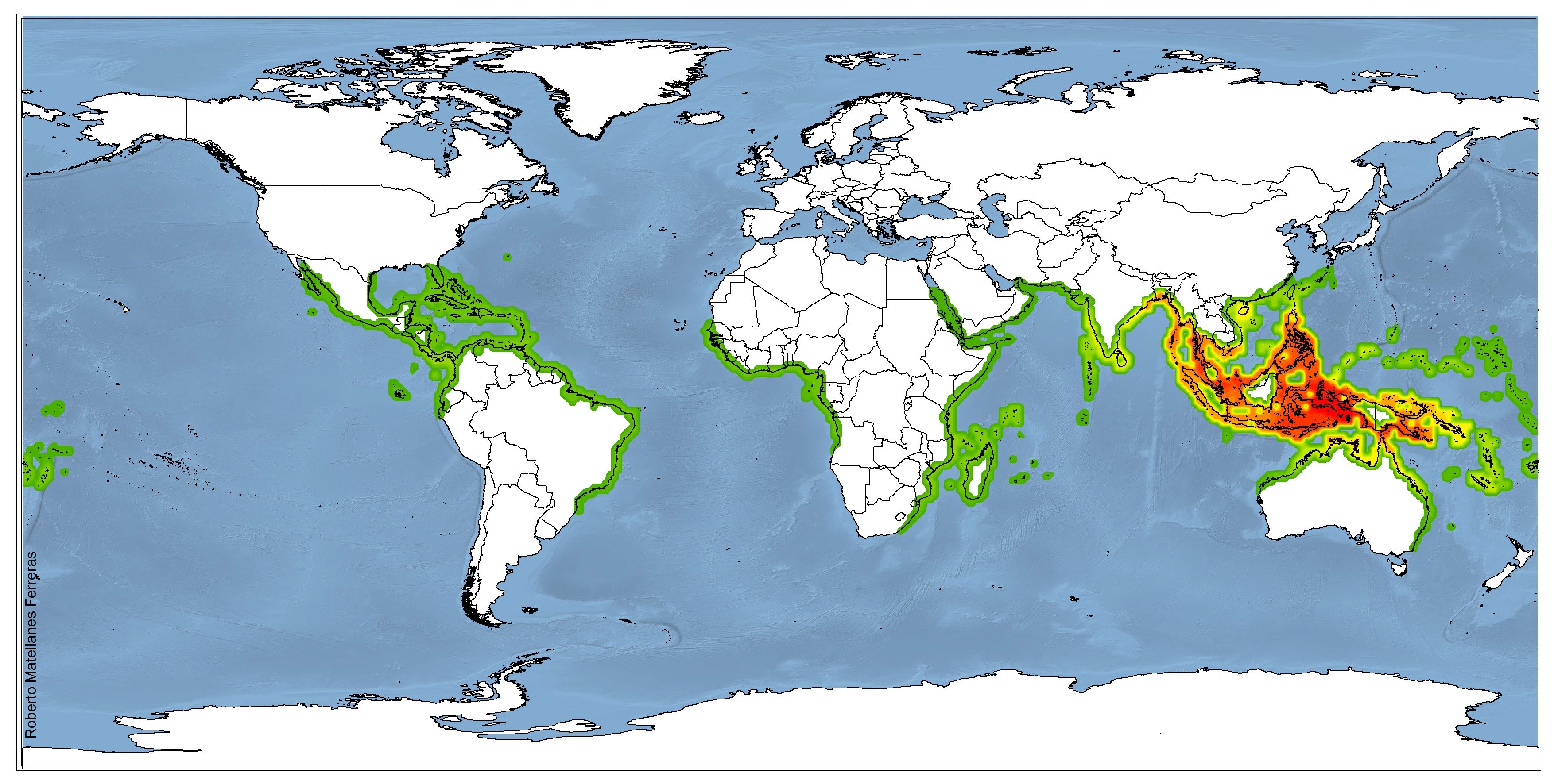 Indonesia parece ser el punto de encuentro de peces, corales y manglares con mayor nivel de amenaza seguido por las costas de África y América Central.