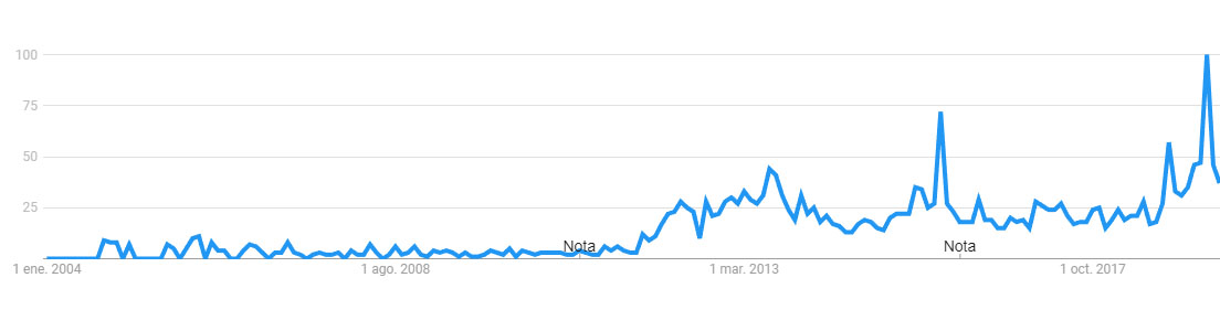 En la figura se puede observar el incremento de búsquedas en Google que se ha producido en España en los últimos meses. El pico de octubre de 2015 fue tras la aprobación definitiva del «impuesto al Sol».