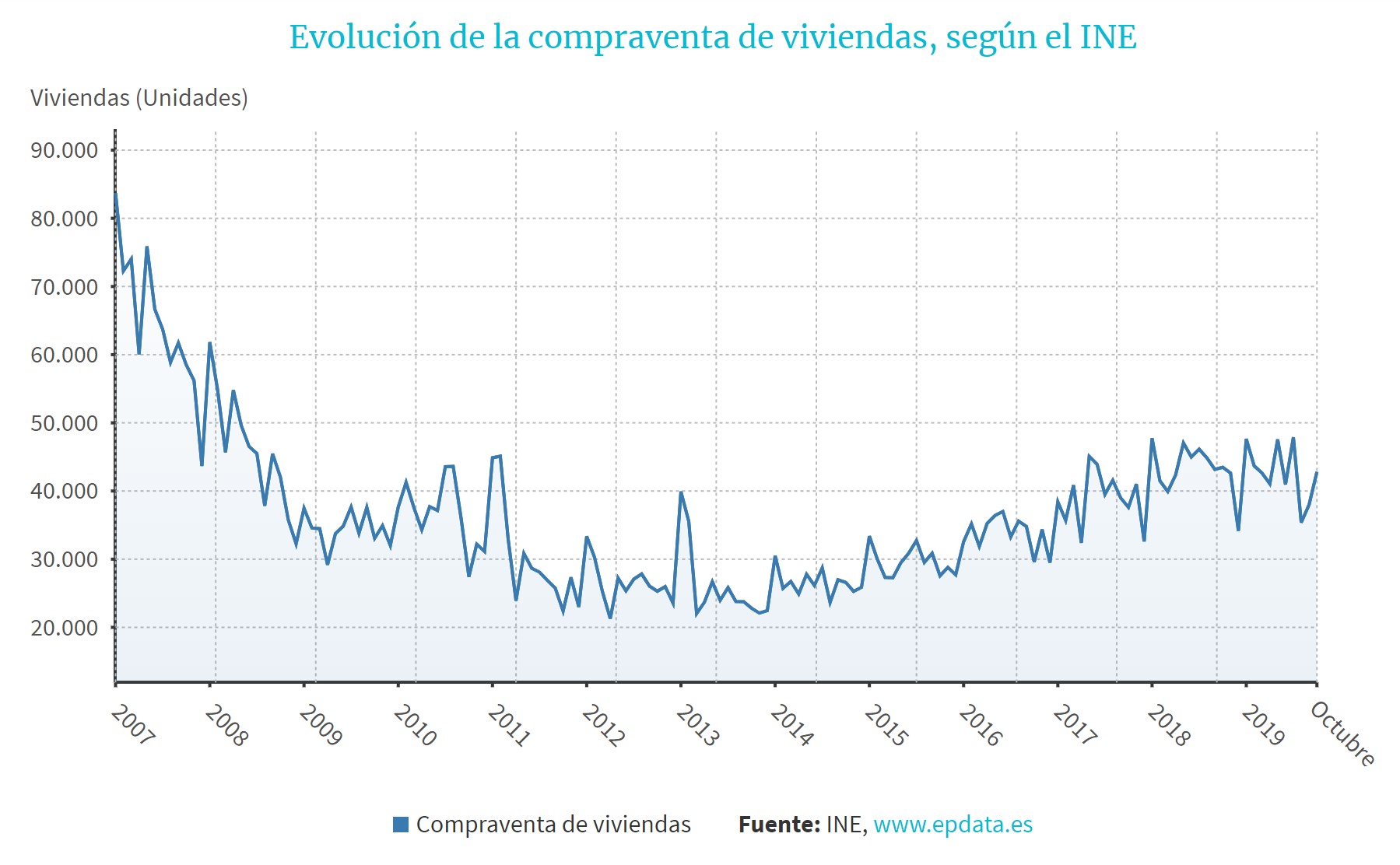 En cuanto a cifras relativas a compra-venta de inmuebles y viviendas, los resultados son similares.