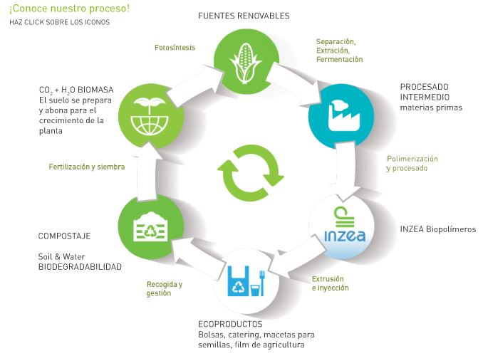 INZEA® es una línea de biopolímeros basados en almidón y PLA (ácido poliláctico), que tienen unas propiedades mecánicas óptimas y unos parámetros de procesado similares a los plásticos convencionales, por lo que pueden ser procesados por métodos de inyección o extrusión utilizando equipos convencionales.