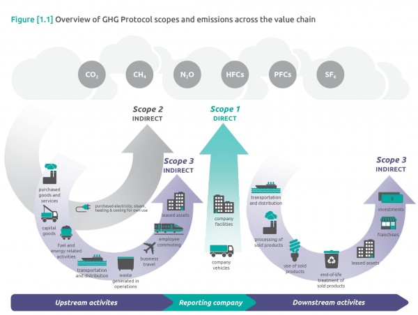 En el esquema adjunto, de GHG Protocol, se resumen muy bien los tres alcances de la HCO y sus componentes.