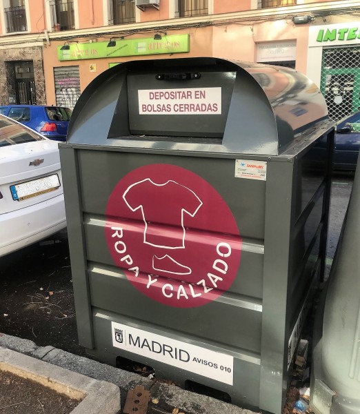 - Depositarla en un contenedor de ropa usada. Aquí tenemos distintas opciones dependiendo de dónde residamos. Por citar algunos ejemplos, nos encontramos con los contenedores de Humana, los de Cáritas, los de Roba Amiga, los que ubican distintas administraciones públicas como el Ayuntamiento de Madrid, etc.