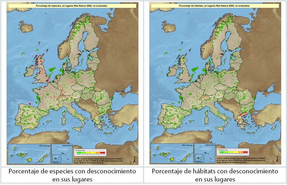 Si bien es cierto que la valoración es algo importante, más importante es aún la «no valoración». Muchos países disponen de especies y hábitat que son completos desconocidos. Más de 3.400 espacios de toda Europa presentan algún grado de desconocimiento sobre sus especies y 330 espacios tienen total desconocimiento de sus hábitat. Grecia es el primer país con un importante número de lugares con desconocimiento de sus especies y, desgraciadamente, España sigue su ejemplo en segundo lugar. Lo mismo ocurre con los hábitat. Reino Unido y Alemania encabezan la lista de países con desconocimiento de sus hábitat. Les siguen Francia y, nuevamente, España. Un dato curioso, Canarias tiene un elevado número de hábitat cuya valoración global en la Red Natura 2000 se desconoce.