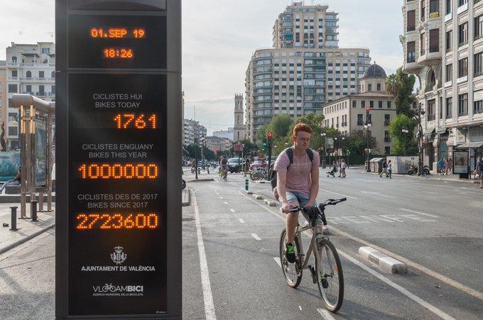 Una foto se hizo ayer por la tarde viral en València. Es la que indicaba en el contador de bicis y patinetes situado en la plaza de toros la cifra de un millón de desplazamientos en el Anell Ciclista. En lo que llevamos de año, el marcador de la calle Xàtiva ha registrado un 54 por ciento más de movimientos sostenibles que en el mismo periodo de 2018, cuando a estas alturas del año se habían registrado 650.000 pasos de bicis y patinetes.
