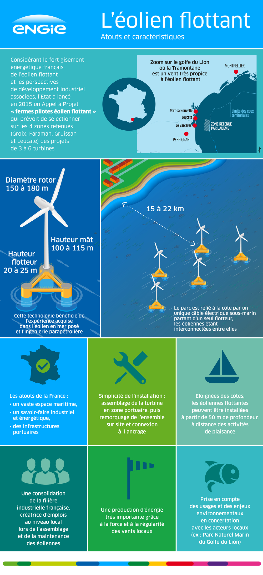 El parque se instalará en la costa de Leucate-Le Barcarès, al norte de Perpignan, y estará compuesto por cuatro aerogeneradores de 6 MW de potencia unitaria asociados a estructuras flotantes semisumergibles.