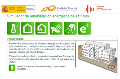 La Fundación Laboral de la Construcción ha desarrollado un simulador educativo on line que permite, mediante realidad virtual, simular el entorno real de un edificio, con el fin de comprobar y practicar aquellas operaciones orientadas a la rehabilitación y mejora de la eficiencia energética sobre un bloque de viviendas modelo.