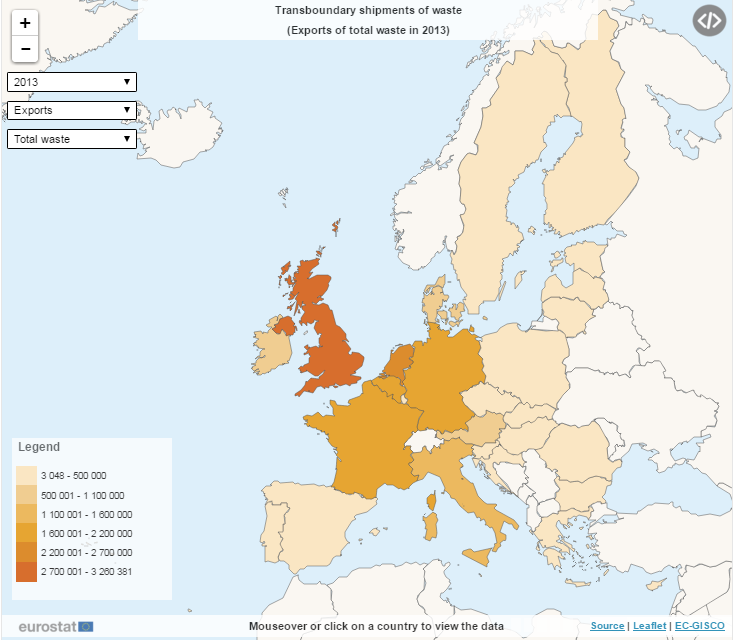 Eurostat publica un mapa interactivo de movimiento de residuos dentro de la UE