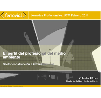 Presentación realizada por Valentín Alfaya, Director de Caliad y Medio Ambiente de Ferrovial, sobre el perfil de Técnico Medioambiental en el Sector de la Construcción e Infraestructuras.