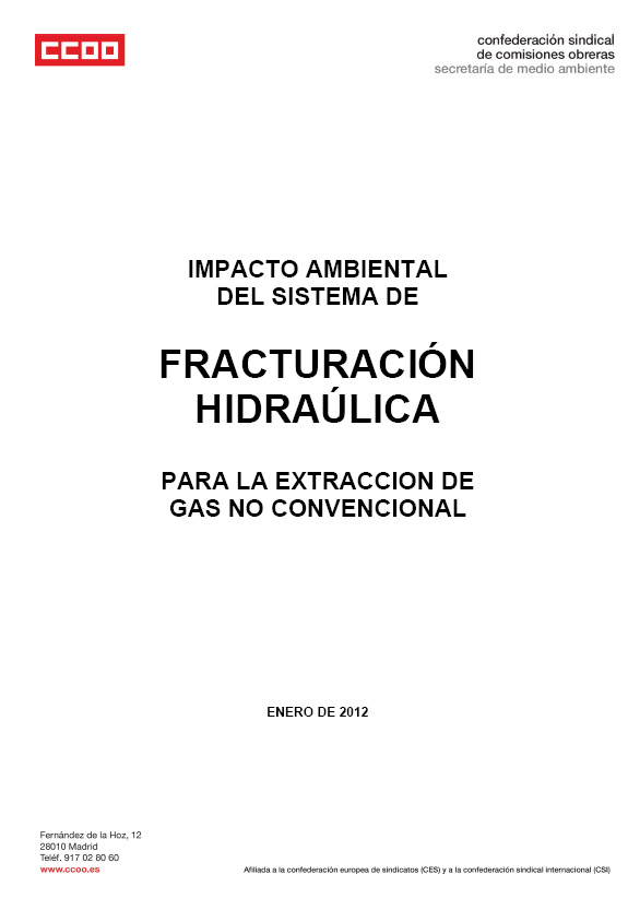Informe realizado por el sindicato CCOO para la evaluación del impacto ambiental del sistema de fracturación hidráulica en la extracción de Gas no convencional a raíz de la posible explotación de un yacimiento de Gas en Álava.