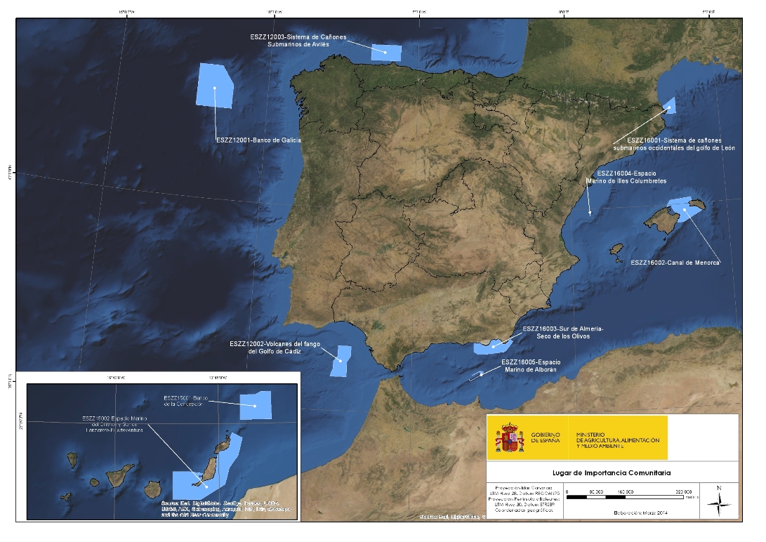Los espacios marinos que ahora se proponen son el Sistema de cañones submarinos occidentales del golfo de León y el Canal de Menorca; los Volcanes de fango del golfo de Cádiz, y el Banco de Galicia.