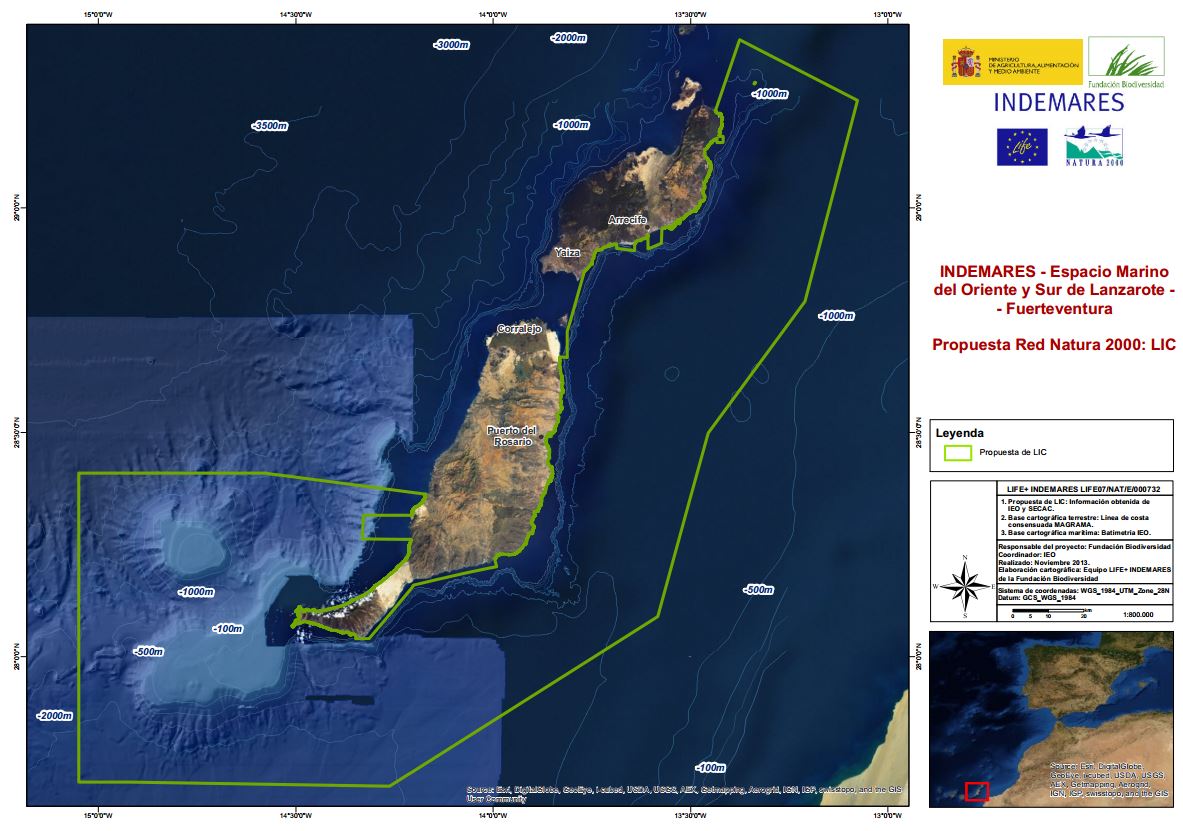 El Ministerio de Medio Ambiente propuso la inclusión del Espacio Marino del Oriente y Sur de Lanzarote-Fuerteventura como Lugar de Importancia Comunitaria (LIC) de la Red Natura 2000, dentro del proyecto INDEMARES, lo que permitiría declarar como área protegida una gran zona en la que el Ministerio de Industria ha dado permisos a Repsol para realizar las prospecciones.