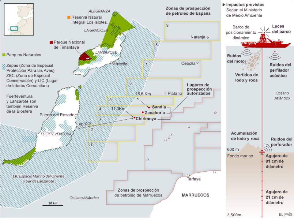El MAGRAMA ha emitido la Declaración de Impacto Ambiental (DIA) favorable del “Proyecto de perforación de sondeos exploratorios en los permisos de investigación de hidrocarburos denominados Canarias 1 a 9”