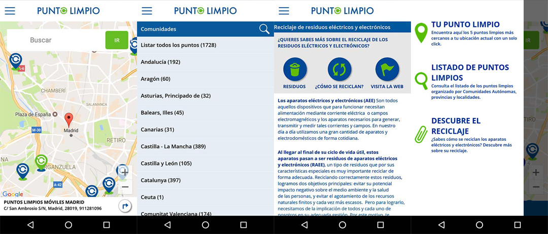 Completo buscador que incluye más de 1.700 puntos de entrega de estos residuos distribuidos por todas las Comunidades Autónomas de España, con el objetivo de facilitar que los ciudadanos puedan canalizar adecuadamente los RAEE, contribuyendo con ello a su adecuado reciclaje y a evitar un potencial impacto negativo sobre el medio ambiente y la salud de las personas.