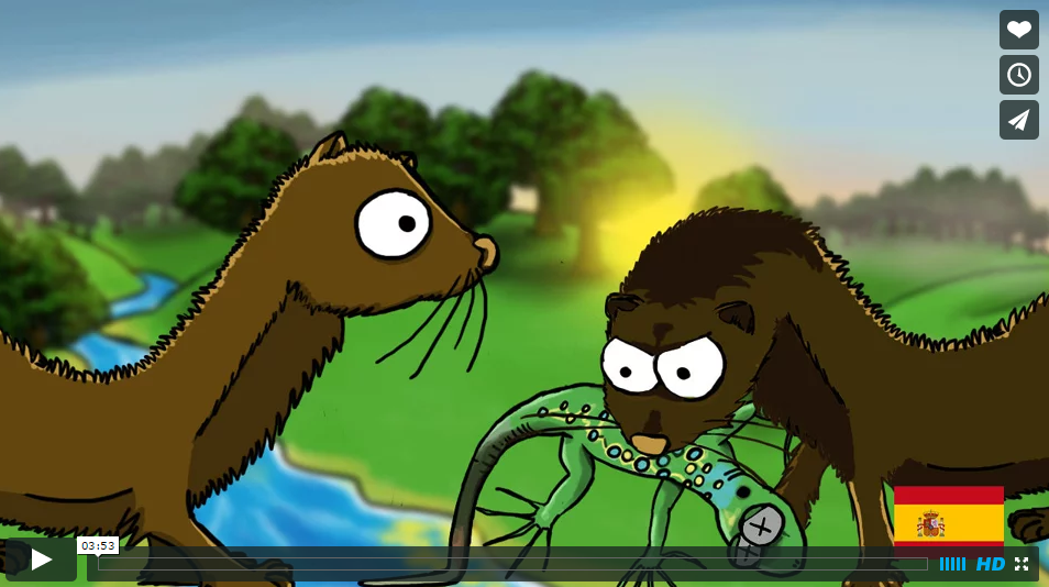 En esta animación, se muestran las consecuencias que tiene la invasión biológica del visón americano (Mustela vison) en las zonas en las que vivía previamente el visón europeo (Mustela lutreola)